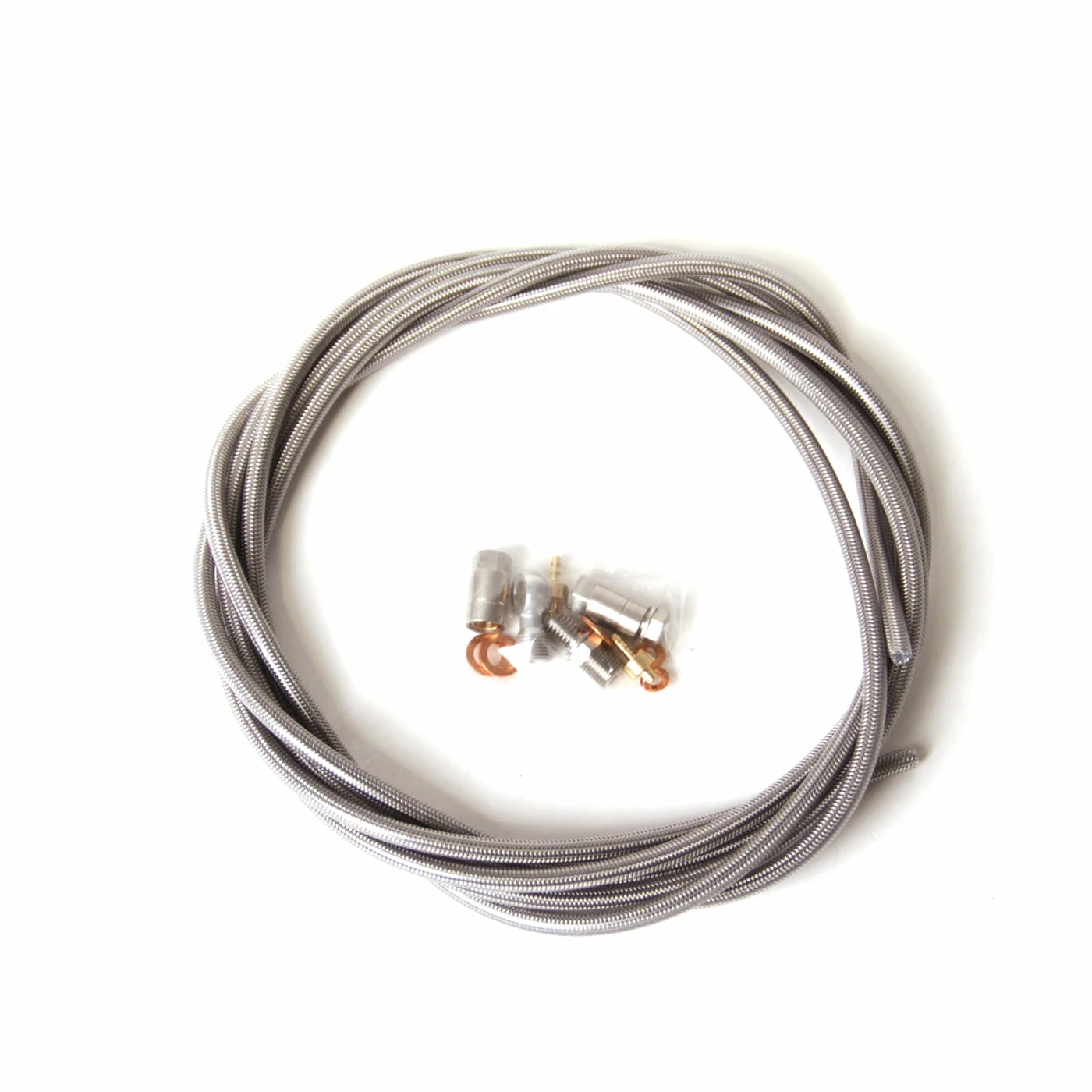 Tubo freno originale Hope in treccia d’acciaio, compresi i connettori per la leva del freno (0°) e la pinza del freno (90°) e compresi i perni e le olive